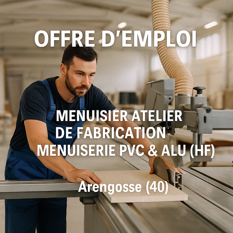 Offre emploi construction en Aquitaine : MENUISIER ATELIER DE FABRICATION MENUISERIE PVC & ALU (H/F)